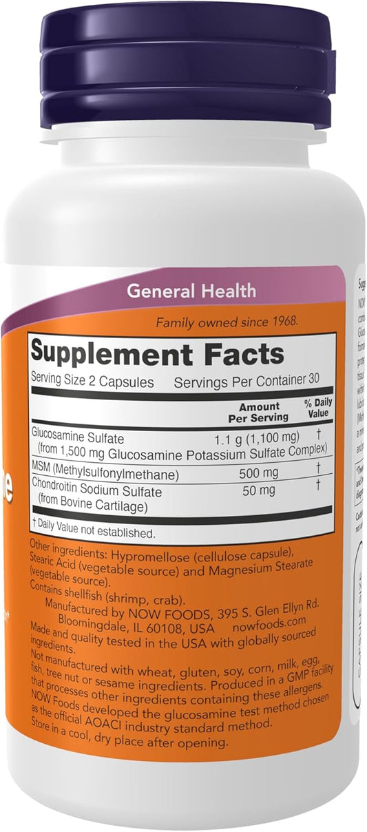 NOW Foods Glucosamine & MSM with Chondroitin Sulfate for Joint Health - 60 Veg Capsules