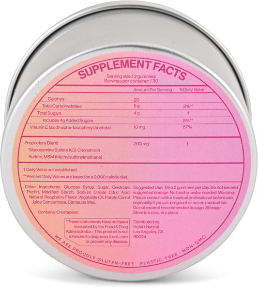 Pain Relief Joint Support Gummies with Glucosamine, Chondroitin, MSM, Vitamin E - Raspberry Flavored 60 Gummies