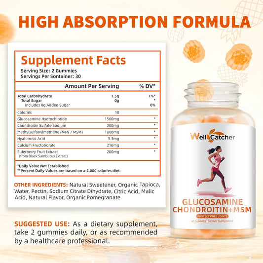 Glucosamine Chondroitin Gummies, 1500mg Glucosamine & 1000mg MSM, Joint Support for Adults, Elderberry Flavor, 90 Servings x 2 Pack