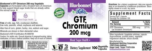 Bluebonnet Nutrition GTF Chromium 200 mcg Capsules - 100 Count Bottle