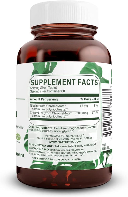 GTF Chromium Polynicotinate with ChromeMate, 200 mcg, 60 Vegan Tablets for Metabolism & Cardiovascular Health