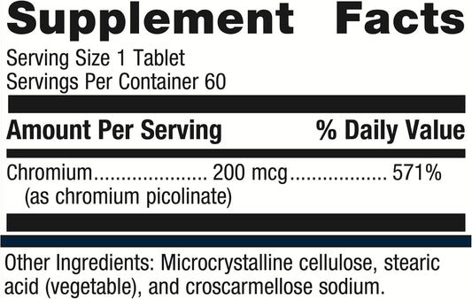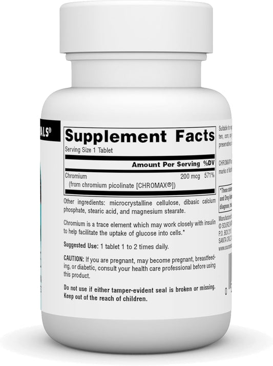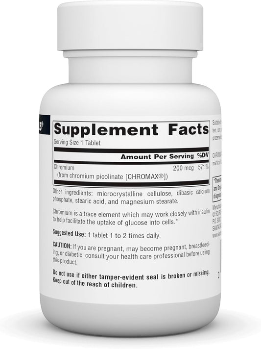 Source Naturals Chromium Picolinate 200 mcg - 60 Tablets | Yeast-Free Chromium Supplement