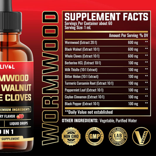 10in1 Wormwood Liquid Drops with Black Walnut, Cloves & More - Digestive & Immune Support - 2 Fl OzVendor:MILIVOLRegular price $119.69 AUDRegular priceUnit price / per-