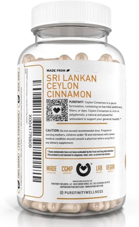 1500mg Purefinity Ceylon Cinnamon Capsules - Vegan Antioxidant Supplement, Non-GMO, 150 Count - Sri Lankan Bark Alternative