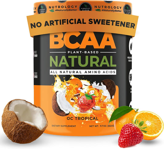 Plant-Based BCAA Powder with Greens & Fruits Superfood Blend - Vanilla Cinnamon & Orange Coconut Flavor (60 Servings)
