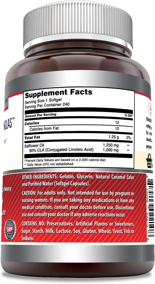 Amazing Nutrition CLA Supplement 1250mg Softgels - Non-GMO, Gluten-Free, Made in USA - 240 Count