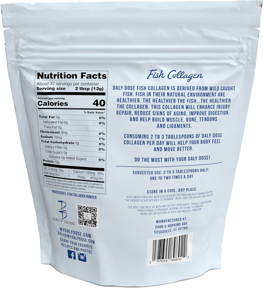 1lb Bag of Daly Dose Tilapia Fish Collagen Powder - 37 Servings, 12g Protein - Gluten Free, Keto & Paleo Friendly, No Sugar, Non-Irradiated