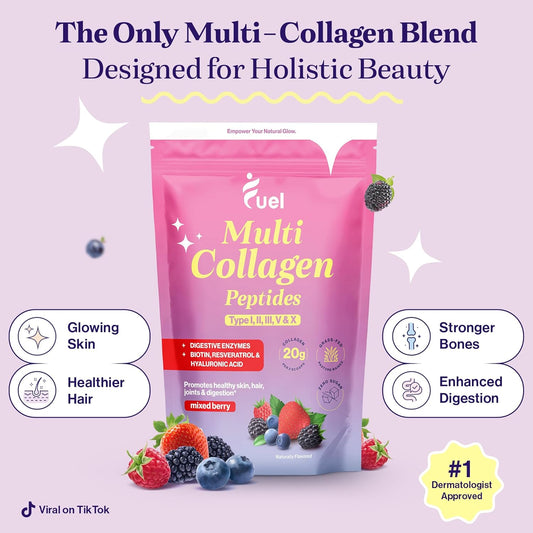 Mixed Berry Collagen Protein Powder with Hyaluronic Acid & Biotin - Hydrolyzed Collagen Types I, II, III, V, X for Women - Promotes Skin, Hair, Nails - Multi Collagen Peptides Powder