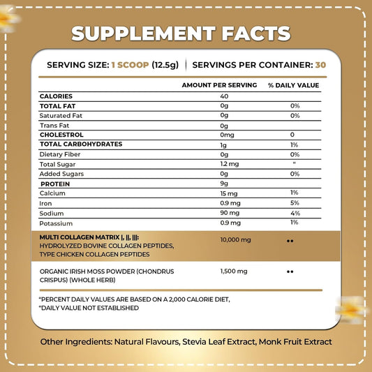 Naturally Sourced Collagen Peptides Powder with Irish Sea Moss Vanilla Caramel Flavor - Hydrolyzed Collagen with Biotin for Hair, Skin, Nails, Joints - 30 Servings, 380g