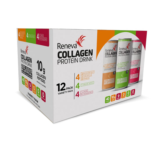 Variety Pack Reneva Collagen Protein Drink with 10g Collagen Peptides, Electrolytes, B-Vitamins, Zinc, and Zero Sugar