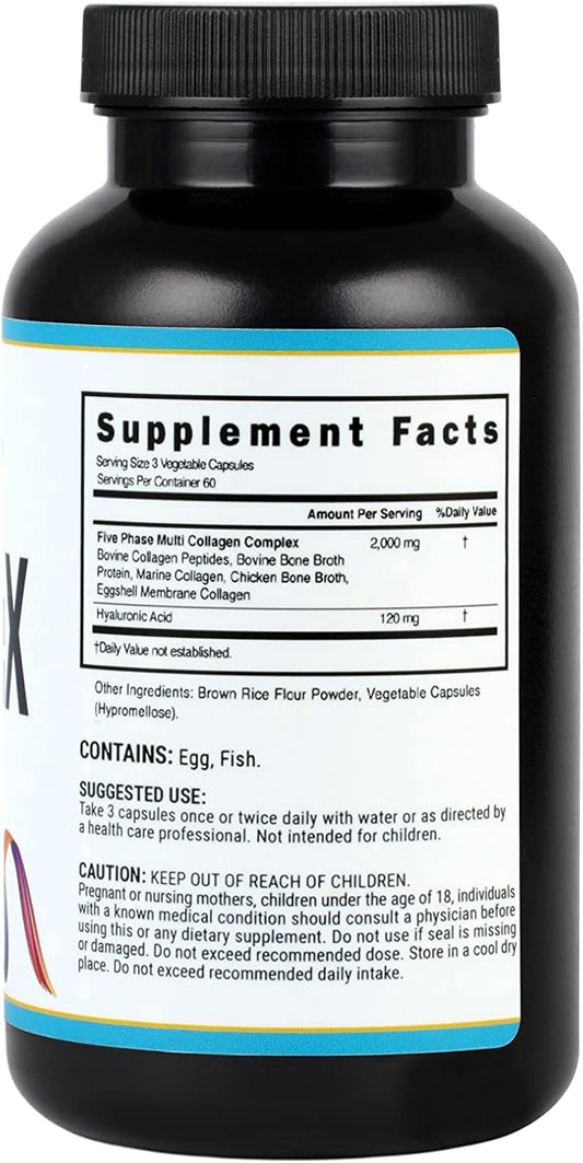 Vhokken Multi Collagen Complex with Hyaluronic Acid - Joint Support, Hair, Skin, Nails - 2120mg, 180 Capsules
