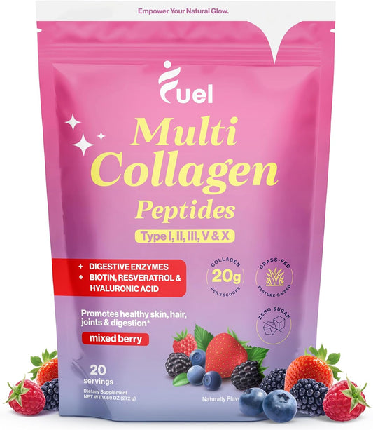Mixed Berry & French Vanilla Collagen Drink for Women - Fuel Collagen Peptides Powder with Hyaluronic Acid, Vitamin C, Tremella, Biotin - Supports Skin, Hair, and Nails