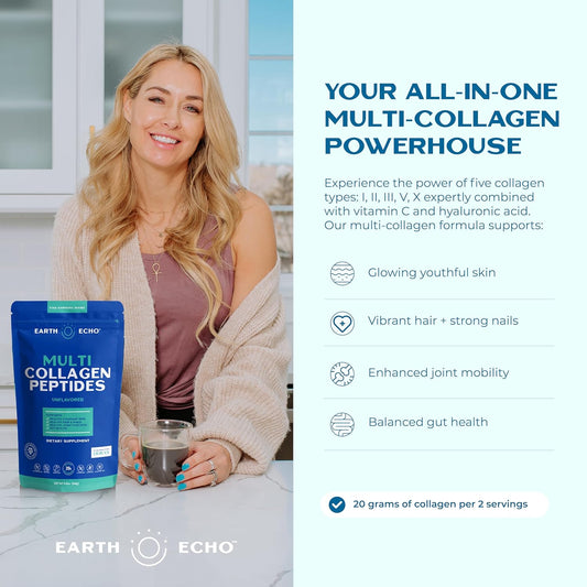 16 Oz VivoNu Multi Collagen Peptides Powder with Hyaluronic Acid, Biotin & Vitamin C - Unflavored Hydrolyzed Protein Peptides Blend for Keto & Paleo Diets - Easy Mix in Drinks - Type I, II, III, V, X - 1LB/1Pack