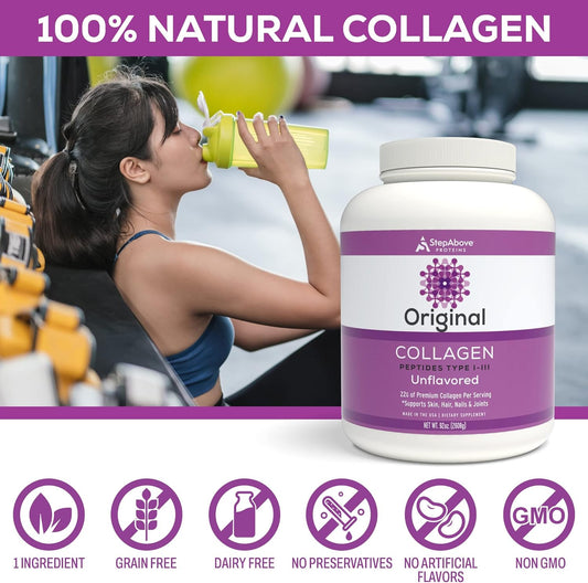Step Above Proteins Original Collagen Peptides - Premium Hydrolyzed Type I-III Bovine Protein Powder - 92 Oz Size