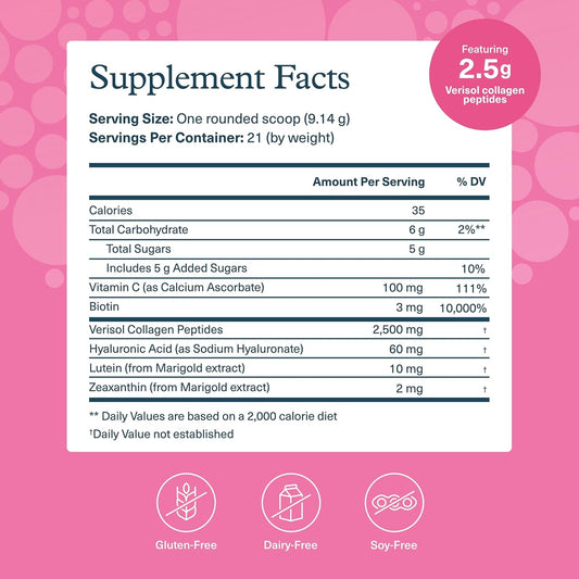 Collagen Peptides Protein Powder with Vitamins C, D, and E - Keto Friendly Pink Lemonade - 30 Servings