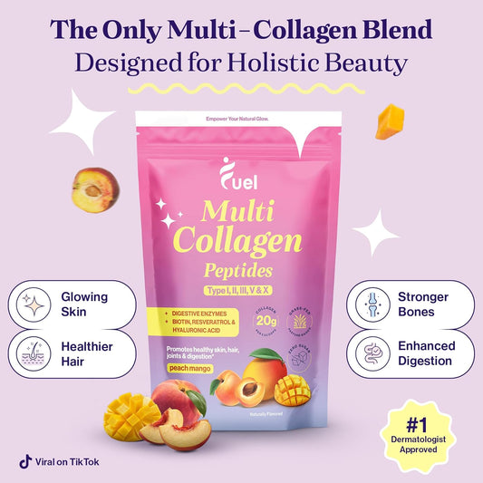 Hydrolyzed Collagen Peptides Powder with Hyaluronic Acid & Biotin, Peach Mango & Mixed Berry Flavors - Promotes Skin, Hair & Nail Health, 20 Servings