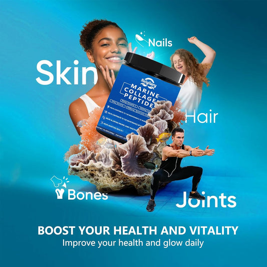 Marine Collagen Peptides Powder with Hyaluronic Acid, Biotin, and Vitamin C - Instant Dissolving Formula for Healthy Hair, Skin, and Nails - Men and Women's Supplement
