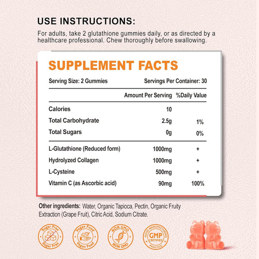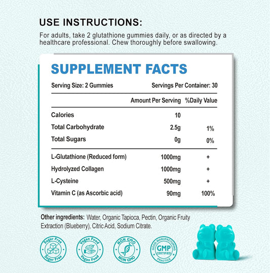 Blueberry Flavored Glutathione Collagen Gummies with Vitamin C for Women - 60 Count, Vegan, Sugar Free Supplement for Hair, Skin, Nails, Muscles, Joints, Anti-Aging