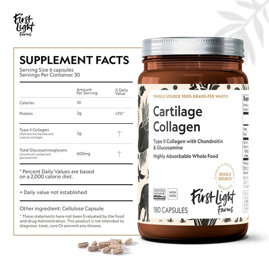 Grass-Fed Wagyu Cartilage Collagen Capsules | Freeze-Dried Type II Collagen for Joint Health | Supports Recovery & Skin Health | 120 Capsules