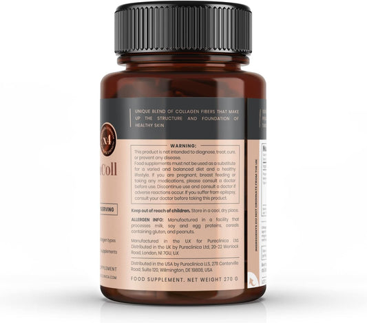 Pureclinica UltraColl Marine Collagen 1000mg x 180 Tablets - Anti-Aging Formula with Patented Collagen Types I, II, III, and VII for 6 Months Supply.