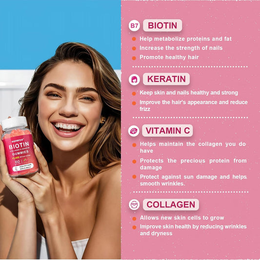 Vegan Hair Skin and Nails Gummies with Biotin 10000mcg, Keratin & Collagen - 60 Count Hair Growth & Strengthener for Women
