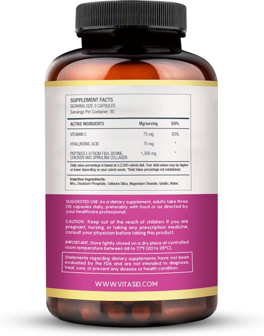 VITASEI Collagen Supplements for Hair, Skin, Nails, and Joints - Type I & X Collagen Peptides with Hyaluronic Acid and Vitamin C - 90 Capsules for Women & Men
