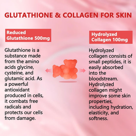 Whoyun Glutathione Collagen Gummies | Skin Health Formula with Glutathione & Collagen | Reduce Wrinkles, Boost Immunity | 60 Gummies