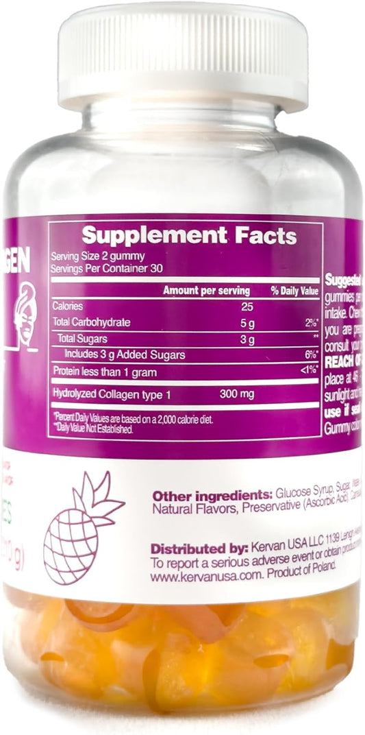Type 1 Hydrolyzed Collagen Gummies for Adults - Gluten Free & Halal - Skin, Hair, Nails Booster - 60 Gummies