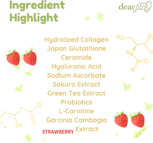 Zynxel Dear Face Strawberry Beauty Milk Japanese Collagen Drink - 50,000mg Hydrolyzed Collagen, 6.3oz (1 Pack)