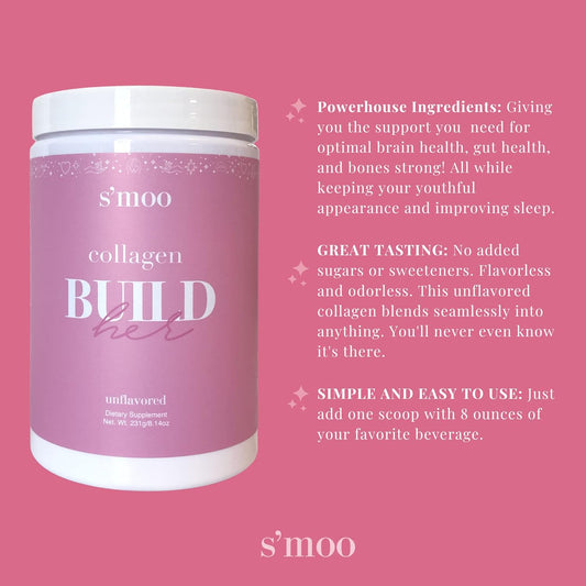 S'moo BUILD(her) Collagen Peptides Powder - Hair, Skin, Nail, and Joint Support - Unflavored - Hydrolyzed Collagen Drink Mix - Gluten-Free - 30 Servings