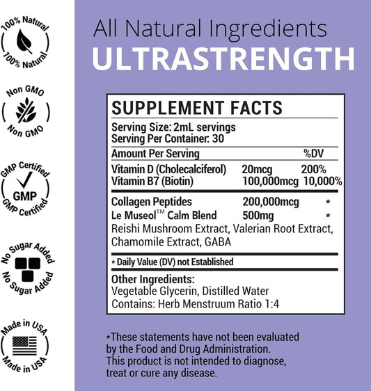 Women's Liquid Collagen with Biotin, Reishi, Chamomile, and Valerian Root Extract Drops for Healthy Skin and Hair
