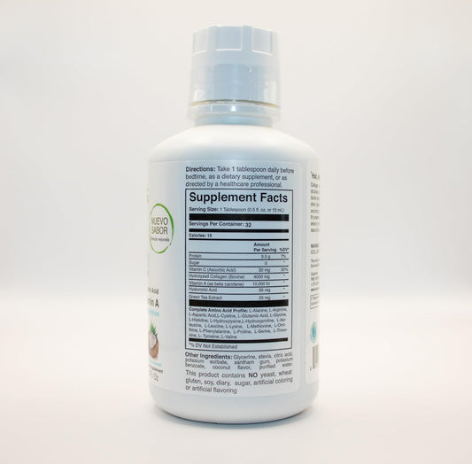Hydrating Collagen Liquid with Hyaluronic Acid, Vitamin A, and Coconut Flavor - 32 oz. Bottle