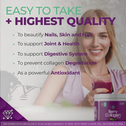 Berry Collagen Blast Powder for Hair, Skin, Nails, Joints, and Gut | Grass Fed Collagen Peptides | 204g