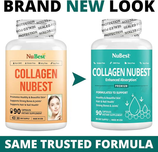 Premium Collagen Peptides Capsules for Hair, Nails, Skin - 1500mg - 3 Pack - Hair Growth Supplement with Vitamins - NuBest Collagen Formula for Adults