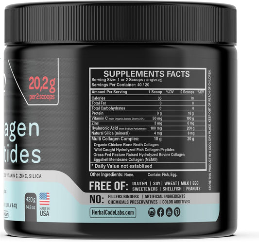 Horbäach Multi Collagen Protein Powder 16 oz - Type I, II, III, V, X - Hydrolyzed Peptide - Keto & Paleo - Unflavored & Gluten-Free
