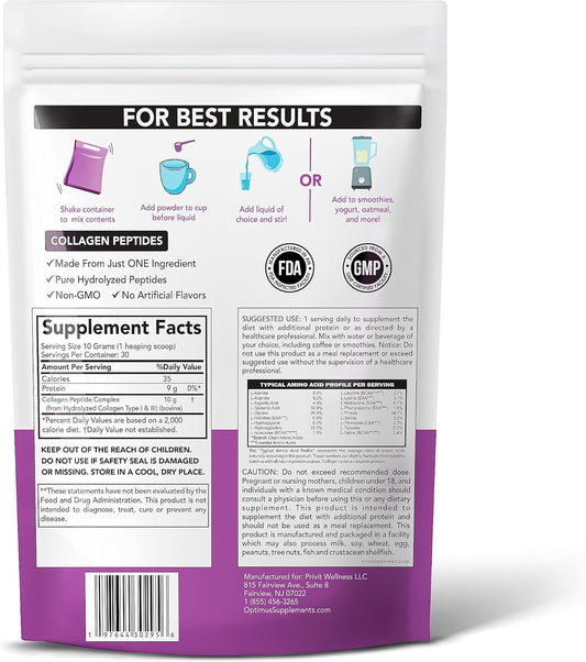 Premium Collagen Peptides Powder for Hair, Skin, Nails & Joints - Hydrolyzed Type I & III Supplement - Unflavored - 30 Servings - Men & Women