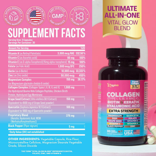 Premium Collagen Pills with Peptides & Essential Nutrients for Hair, Skin, and Nails (90 Capsules)