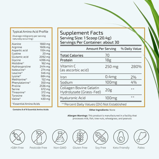 VitaTradingCo. Grass-Fed Collagen Peptides Powder with Hyaluronic Acid & Vitamin C for Hair, Skin & Joints - Non-GMO, Paleo, Keto - 30 Servings
