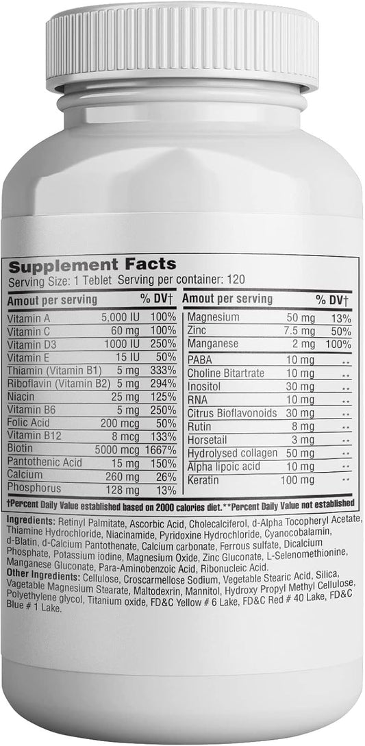 365 Health Skin, Nails & Hair Support - Advanced Formula with Collagen, Zinc, and Vitamin C - Vegan & Non GMO - 120 Tablets