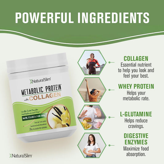 Vanilla Collagen Protein Powder for Hair, Skin, Bone, and Metabolism - Low Carb Meal Replacement Shake Mix - 17.6 oz