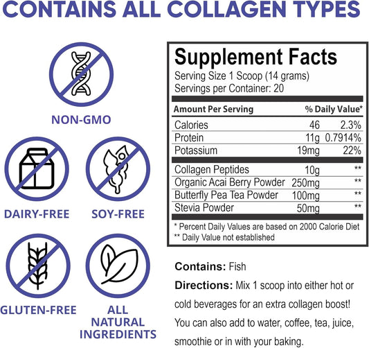 Unflavored Multi Collagen Protein Powder - Hydrolyzed Bovine & Marine Collagen Peptides