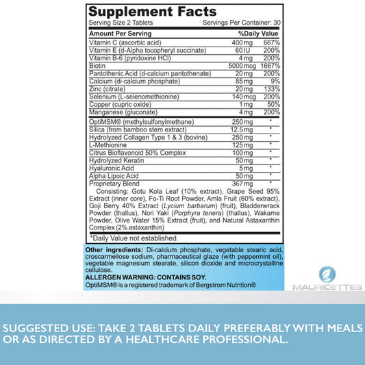Natural Hair Skin and Nails Vitamins with Collagen, Biotin, and Keratin - 20+ Ingredient Blend for Growth and Strength