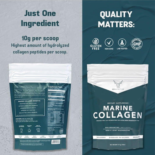 Premium OXNUTRITION Hydrolyzed Marine Collagen Peptides Powder - 18 Oz Anti-Aging Formula for Skin, Hair, Nails, and Joints - Non-GMO, Gluten Free, 3P Tested - Unflavored, Certified cGMP Compliant