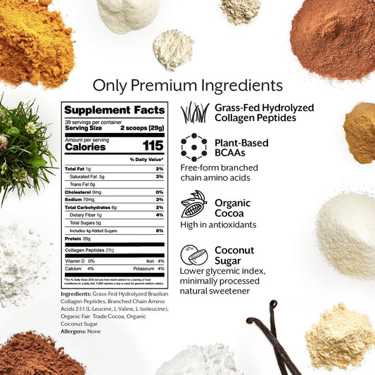 ProMix Nutrition Chocolate Collagen Peptides & BCAA Powder 2.5lb Bulk - Hydrolyzed Protein for Skin, Bones, Joints & Recovery - Add to Shakes, Smoothies & Baking