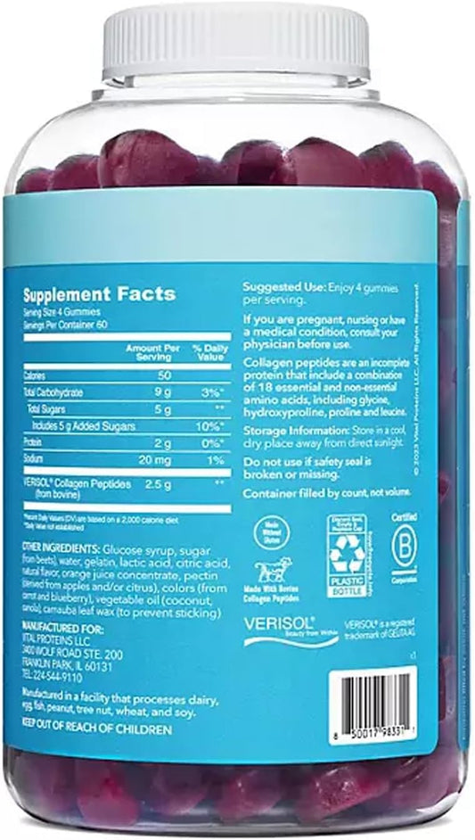 Vital-Proteins Collagen Gummies with 2.5g Verisol Peptides - 240 Grape Flavor Gummies