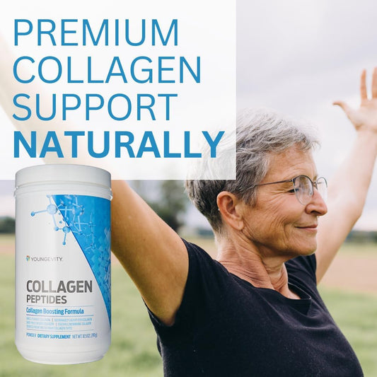 Youngevity Collagen Peptides Powder for Hair, Skin, Nails - Type I & II, Biotin, Vitamin B12, Antioxidants, Alpha Lipoic Acid - Joint, Bone Health - Berry Flavor - 251g