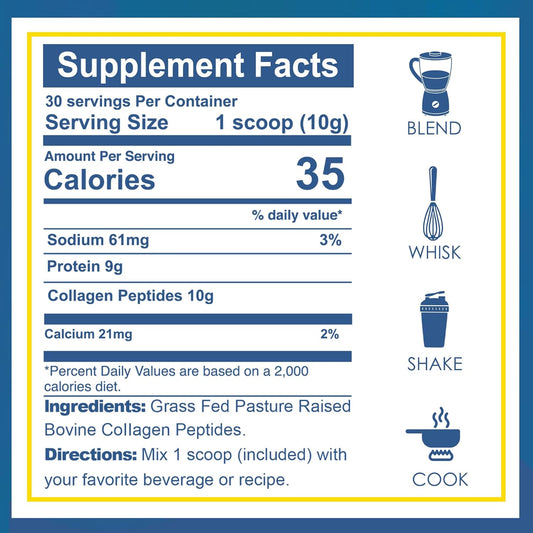 Hydrolyzed Type 1 and 3 Collagen Peptides Powder - Grass-Fed Bovine Source, 100% Cruelty-Free, Supports Hair, Skin, Nails & Joints, 11g per Serving, 41 Servings