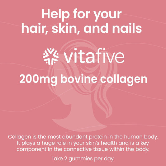 vitafive Bovine Collagen Gummies for Hair, Skin & Connective Tissue Support - Gluten Free - 50 Count