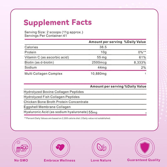 16 Oz Mclovefy Multi Collagen Peptides Powder - Type I, II, III, V, X Protein Supplement with Hyaluronic Acid, Vitamin C, Biotin - Unflavored, Easy Mixing for Drinks