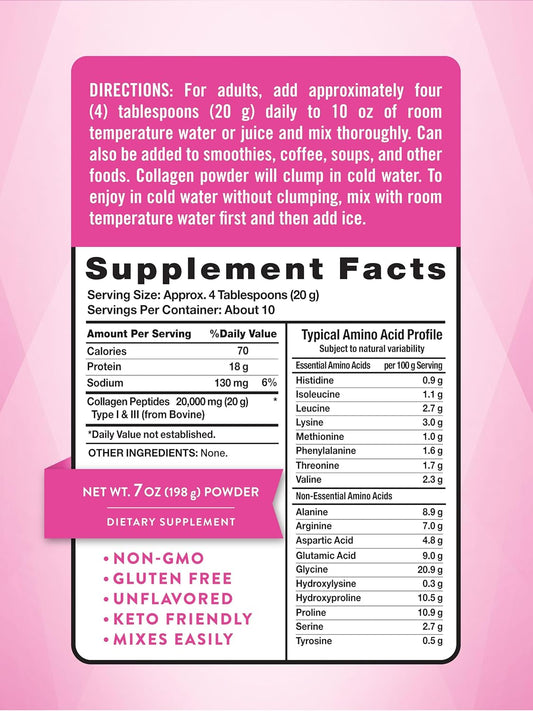 7 oz Nature's Truth Collagen Powder - Type I & III, Grass Fed Peptides, Keto Friendly, Unflavored - Non-GMO & Gluten Free
